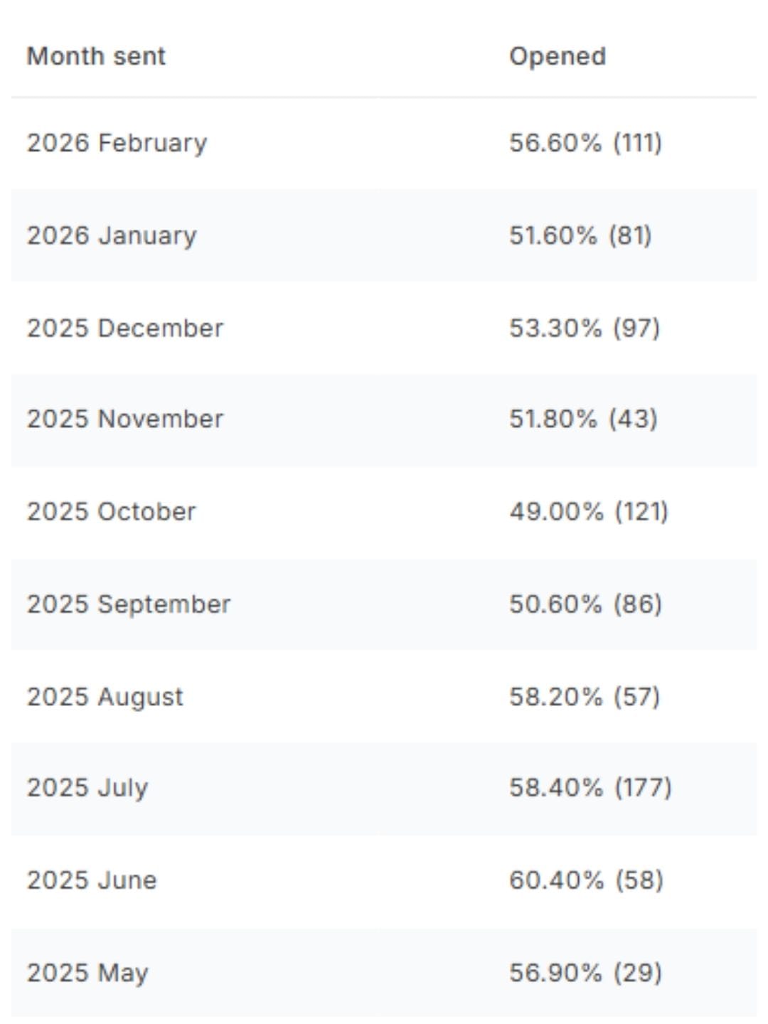 Je te partage ici mes taux d'ouverture sur ma newletter, sur ces dernier mois